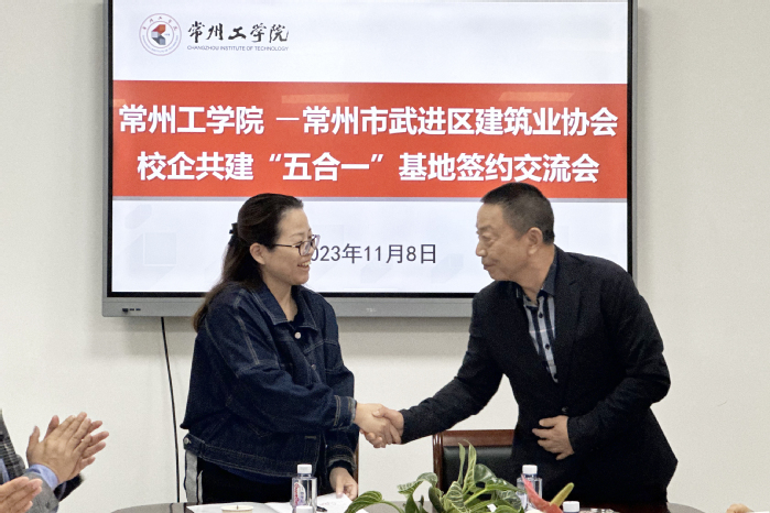 11月8日下午,球盟会官网与常州市武进区建筑业协会举行校企共建“五合一”基地签约仪式。武进区建筑业协会会长/中绿建欣达建设工程有限公司董事长赵骏、协会秘书长陈群一、协会副会长/江苏佰拓建设有限公司董事长方明才、副会长企业/江苏武进建工集团有限公司总经理助理桑红亮、副会长企业/江苏雪湖建设工程有限公司副总经理陈雨婷等一行八人,常州工公司党委常委、副董事长金向红、球盟会官网书记朱建群、经理李书进、副书记曹其、副经理宋杨、副经理傅睿、球盟会官网产学研中心主任黄开林等参加仪式。
