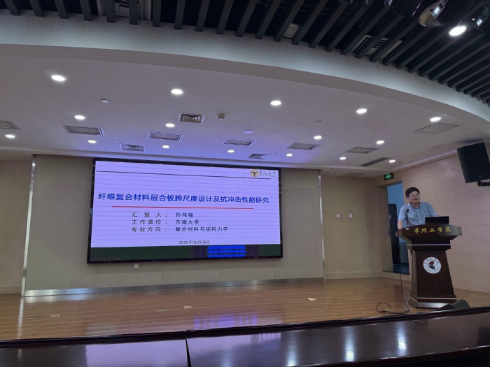6月5日,东南大学土木工程学院青年首席教授孙伟福应邀来校举办了“纤维复合材料层合板跨尺度设计及抗冲击性能研究”学术讲座。这是学院“双进行动”中“百家进校园”活动的具体实践。